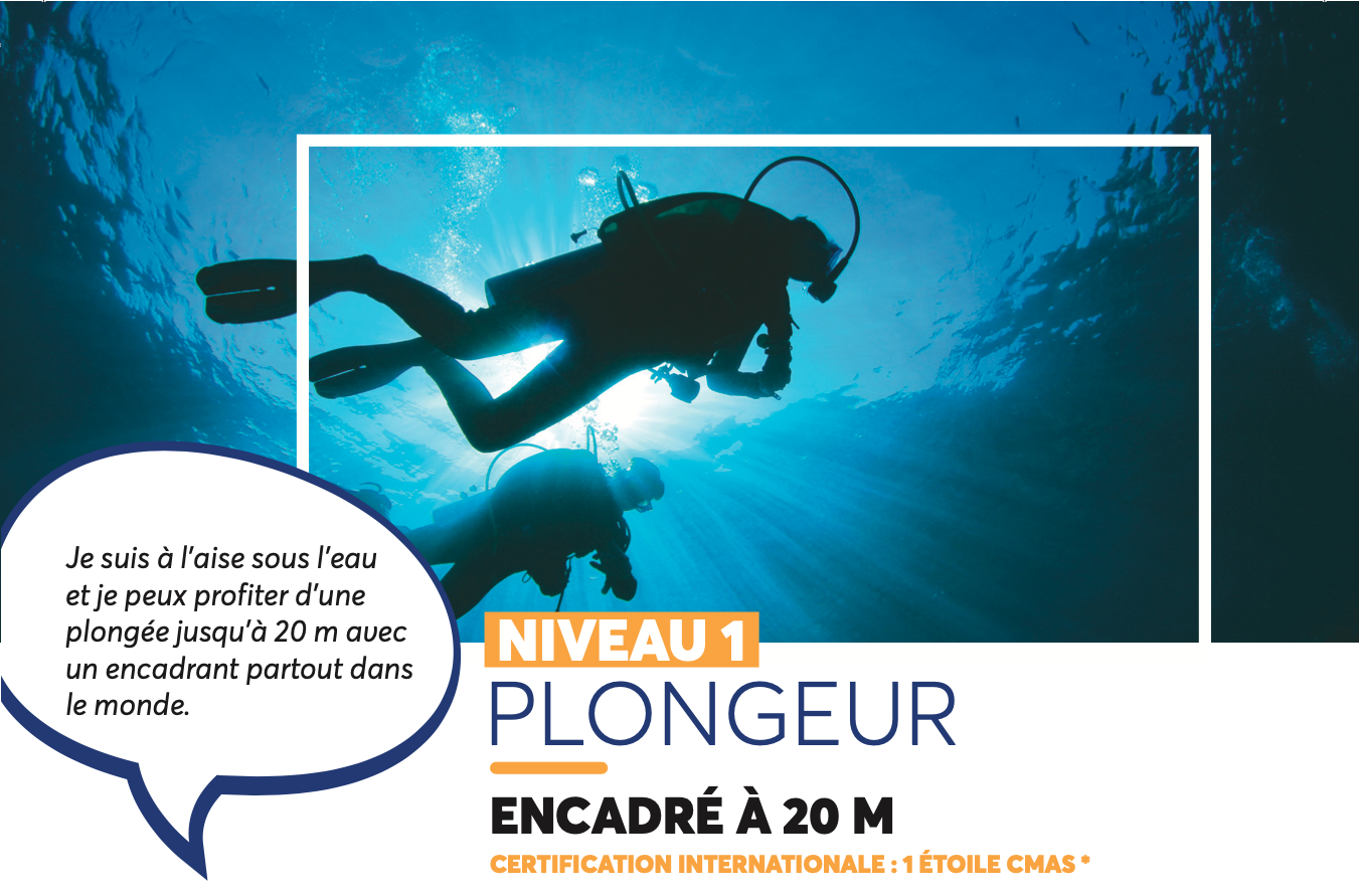 Pas besoin d’être un dauphin ou un agent secret : avec le Niveau 1, on vous apprend tout, pas à pas (ou plutôt, palme à palme) !!