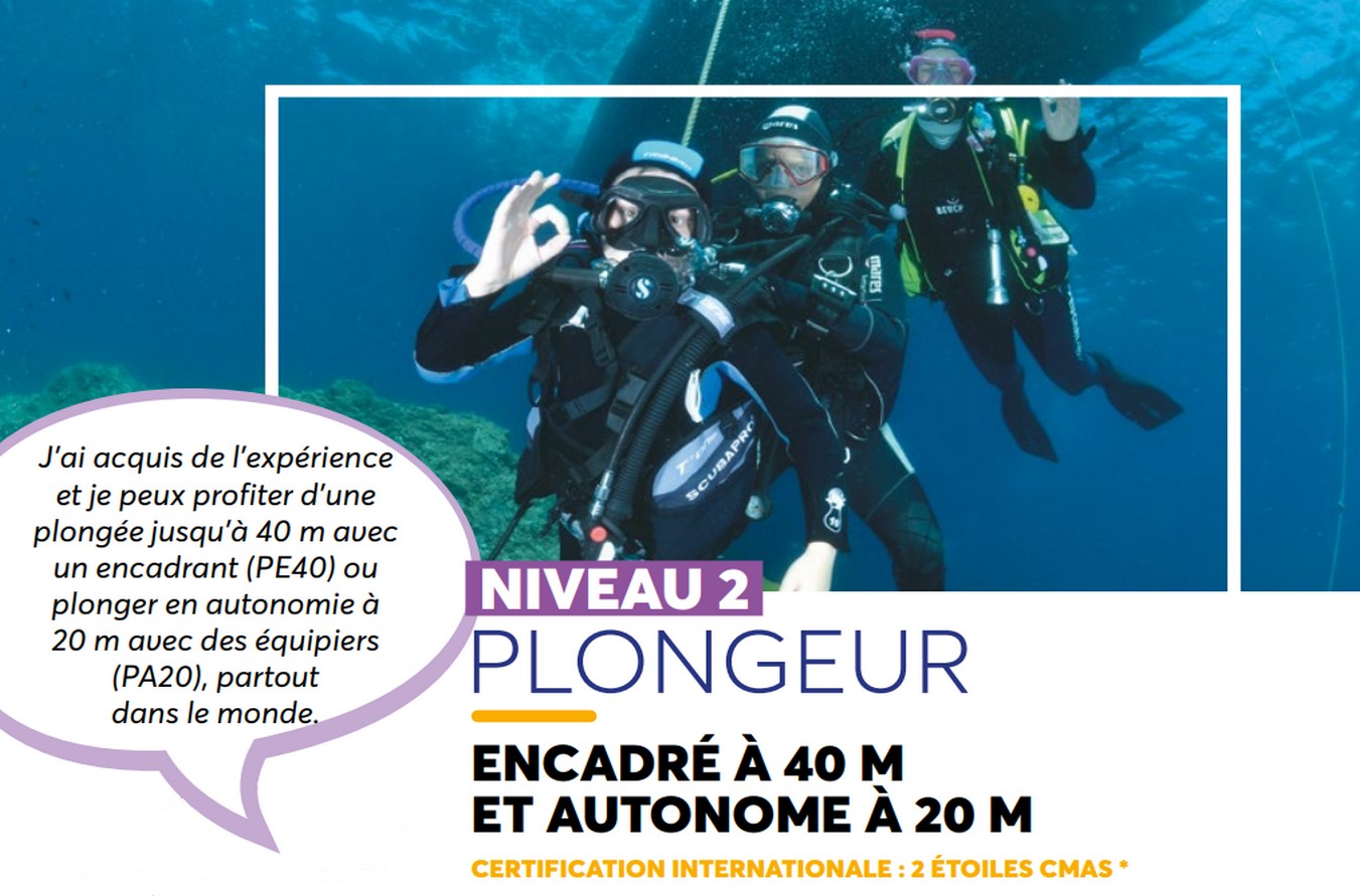 Plonger plus profond, en toute autonomie, dans une ambiance conviviale et passionnée : le Niveau 2 au CSN, c’est le plaisir de progresser sérieusement sans jamais perdre le sourire.